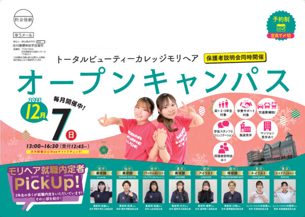 12月のオープンキャンパスは、12月7日㊐です✨ スケジュール・体験内容・参加申込はクリック! ・12月7日㊐★受付中 https://mhc.ac.jp/open-campus/open-campus1207.html オープンキャンパス参加者(入学生対象学年)は、入学金3万円減免の対象になります😁 ✔次回、2026年2月のオープンキャンパスは2月7日㊏です!